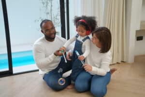 Multi-ethnic family enjoying domestic life, engaging with their child in playful activity, reflecting diverse clientele of Loan Velocity, Inc.